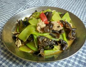 锅内入油,放入肉片翻炒断生盛出留用,锅里放油,入木耳炒,加少量水焖2分钟,入莴笋一起翻炒2分钟左右,入番茄翻炒,倒入炒好的肉片,放入适量蠔油,精盐,适量黄酒翻炒均匀即可