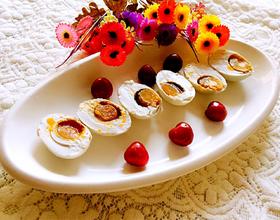 从酒碗里拿出鸭蛋,在盐盘中来回滚动,均匀沾上盐粒。