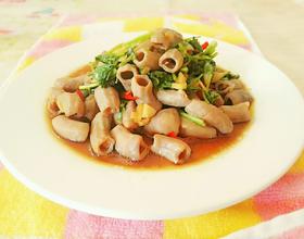 滚烫小肠的时间不宜太长,否则会影响小肠的口感。煮好的汤汁也可以直接淋在小肠上拌一下。
