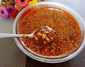 油烧开后,直接倒入辣椒面里会把辣椒面浇糊,让它静置1分钟稍凉正好。