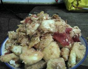 我最后放的鸡蛋,因为孩子不喜欢吃鸡蛋,最后放鸡蛋孩子看不出来,放西红柿味道比较好