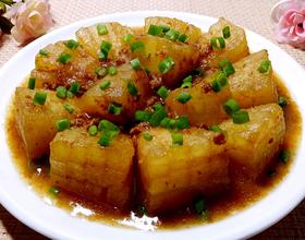 - 3. 然后在切块的冬瓜上用刀再切成田字格,深度切一半就好了