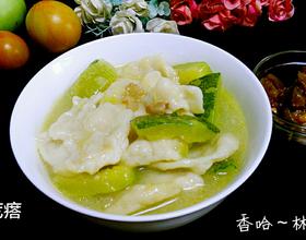 用汤瓢反面轻轻的推动,不让面疙瘩粘连。