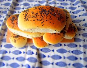整成橄榄形放入烤盘发酵至两倍大,表面喷一点水撒上黑芝麻(可轻轻按压一下)