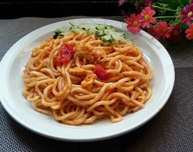 这是一款快手面,方便快捷,但是营养却很丰富,面条尽量选用稍粗一些的面条,口感好,另外炒西红柿一定要放白糖来中和西红柿的酸味,使味道比较柔和。