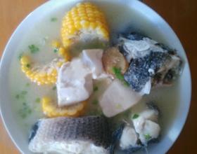 黑鱼切成段,玉米切吃段,老姜,小葱,备用