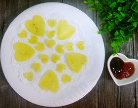 将土豆洗净,用模具压成心形,剩余的边角料可以蒸制土豆泥