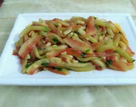 西瓜皮加点盐腌制片刻在入清水洗净