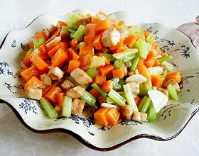 这道菜勾芡.是为了能把汤汁都吸附在菜上,这样菜吃起来更有味些。焯水时,不易把胡萝卜和西芹炒太熟,太熟了就吃不出菜的脆脆的感觉,胡萝卜西芹焯过水后,马上过凉.也是为了让其保证色泽和清脆。