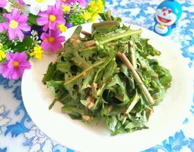将苦菜洗净,去除根部,切成3厘米左右的段,放盘里备用