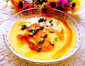 鸡蛋打匀加100克的开水,在加少许香油搅拌均匀。