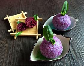 美味的紫薯饭团快来试试吧,甜甜的紫薯香包裹着米饭,让剩米饭华丽丽的逆袭。