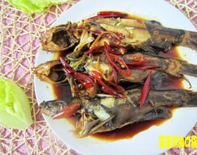 昂刺鱼收拾干净,生姜和红干辣椒切丝,小葱打结。