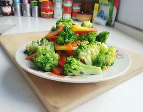 西兰花用淡盐水泡一会儿再冲洗,能把虫子逼出来,也能祛除掉残留的农药。另外西兰花焯水时间不能过长,断生就好,煮的时间过长,炒的时候就该散了,口感也不好。因为红萝卜我切的比较厚,所以和西兰花一起下锅焯水了。