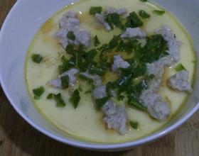 快蒸熟时把猪肉,和青椒放到鸭蛋上面,因为是晚上所以这个步骤我没拍好,就不上传了