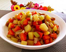如果想吃更香辣的,可以把蔬菜丁过油炸熟,那样更香。焯芹菜时要在土豆胡萝卜九成熟时在下芹菜焯制。