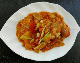 加入西红柿块儿,炒至约三分熟