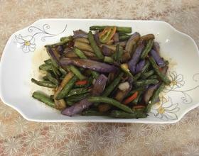 爆香葱姜蒜之后把茄子豆角一起放入,然后把调好的酱汁浇上翻炒均匀