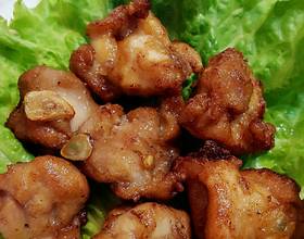 炸制时间不宜过长,否则容易变硬。每块鸡肉都粘上蒜片,香味更浓。