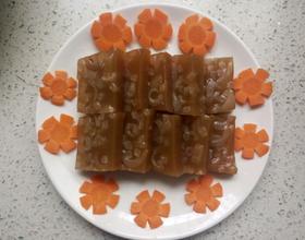切好长片的肉皮冻中间再切上一刀『也可以不切』