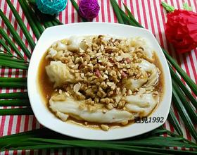 1.调面浆的时候最好一边倒水一边搅拌,那样面粉不会容易粘成一团团粘在碗底。2.最好用平底的蒸盘,那样做出来的肠粉比比较容易均匀受热,我没有平底的,只能用中间突出了一点的,那样倒的面浆要多些。