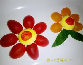 蛋黄当花心,圣女果做花瓣,先做红的。