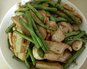 姜蒜爆出香味放入豆角煸炒,然后放入盐和鸡粉炒至豆角变色