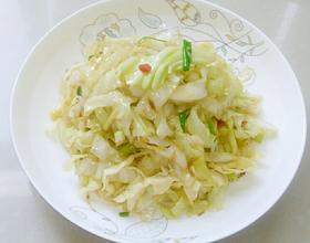 下入卷心菜快火炒至,放盐,味精炒拌均匀即成
