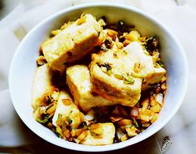 - 14. 倒入煎好的豆腐,开吃吧!外表金黄酥脆,里面嫩滑柔软,好吃啊!