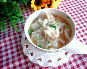 - 11. 锅烧开,就下馄饨,煮开加半碗凉水,水再开,再加凉水,反复三次,就熟了,碗中加半勺酱油,再加一饭勺汤,再把馄饨放在碗里,拌匀,加上香菜就好了