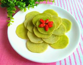 拿出萝卜摆盘,然后放几粒枸杞点缀。