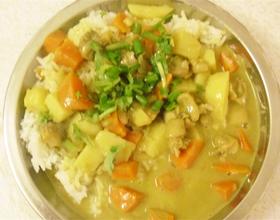 加入适量开水(高汤更佳),放入咖喱、鸡块,再加适量盐、鸡精、酱油调味。大火烧沸腾后转中火,煮至食材软熟、汤汁浓稠即可(约十分钟)。熄火后倒入牛奶,搅拌均匀。