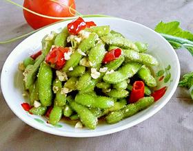 把剪好的毛豆洗净·放入锅中加适量的水·盐·干辣椒段煮熟,熟后捞出过凉备用