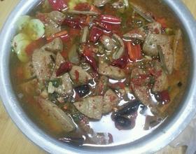 锅里放油把葱蒜姜爆香加入郫县豆瓣酱炒出红油加入高汤烧开后倒入猪肝开锅后2--3分钟捞出
