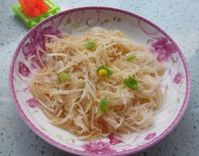 太单调了,放几个葱花装饰一下,很简单的一个凉拌糖醋萝卜丝。