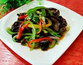 - 1. 彩椒、洋葱洗净切丝,黑木耳洗净备用