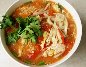 开始煮,等开锅了加上香菜,搅拌一下,再煮一会