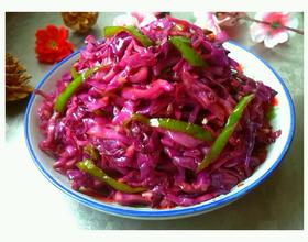 紫甘蓝清洗后用盐水泡一会,可以杀菌、去除残余农药。出锅时放点醋颜色更鲜艳。
