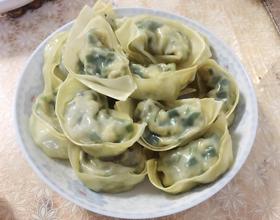 鸡蛋冷凉以后盛入装有韭菜的碗中拌匀感觉不咸还可以再加点盐,馅拌好就可以开始包了