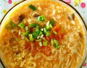 待面条煮熟,打两个鸡蛋,鸡蛋要打散,倒入面条中,轻轻搅拌半分钟即可出锅