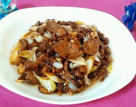 羊肉放入盆中加入淀粉,酱油,盐,味精,糖,姜末,料酒腌十分钟