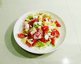 所有食材切好放盘子里,撒上少量胡椒粉,盐一点点,白糖少量,50克淡奶油筷子拌匀,