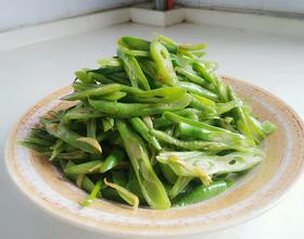 豆角切好后必须焯水,这一步必不可少,因为这样才能缩短烹饪时间,也可以少放点油下去炒,如果是用肉来炒豆角这一步可直接省略掉,不过也要炒熟哦,因为豆角不做熟,吃了会中毒。