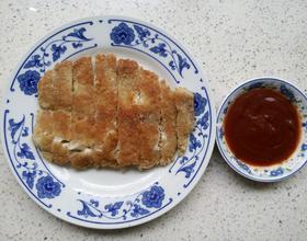 切好的鱼排放入盘中,小盘中放入番茄酱即可