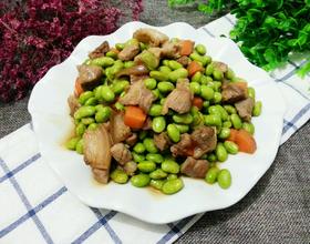 准备好毛豆,猪肉和胡萝卜(毛豆事先剥好啦)