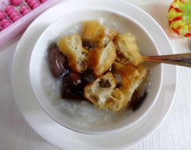 - 6. 用筷子夹一些油条到猪血粥的碗里。可以吃啦。