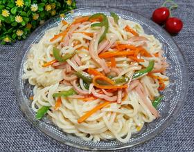 火腿切丝,胡萝卜丝,彩椒丝适量