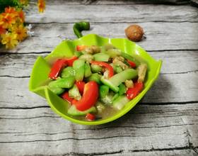 翻.几分钟后放彩椒,撒上盐,翻炒均匀可以关火喽。(属于快手菜),