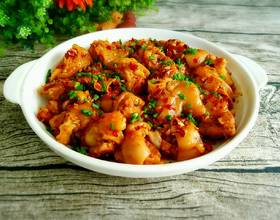 炒好的蒜香猪蹄盛出来,撒上葱花即可。