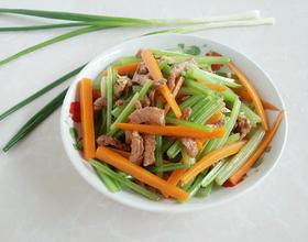 炒芹菜和胡萝卜时,大火少许炒制就可,因之前的焯水,把芹菜和胡萝卜已焯制八九成熟了。勾芡汁,是为了更好的把味粘附在菜上,让菜吃起来更有味